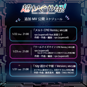 あわせて解禁されたスペシャルトラック「メルト CPK! Remix」は2007年にryo (supercell)が発表して以来、世界中のボカロファンから愛され続ける大ヒット曲「メルト」をryo (supercell)自らが新規リミックスを手掛け、かぐやが歌った一曲。